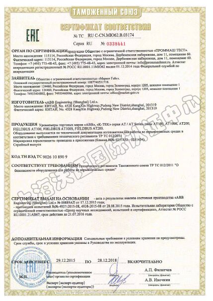 - 采用《在爆炸危險(xiǎn)環(huán)境中工作的電氣設(shè)備安全性》的海關(guān)同盟技術(shù)法規(guī)TP TC 012/2011。
