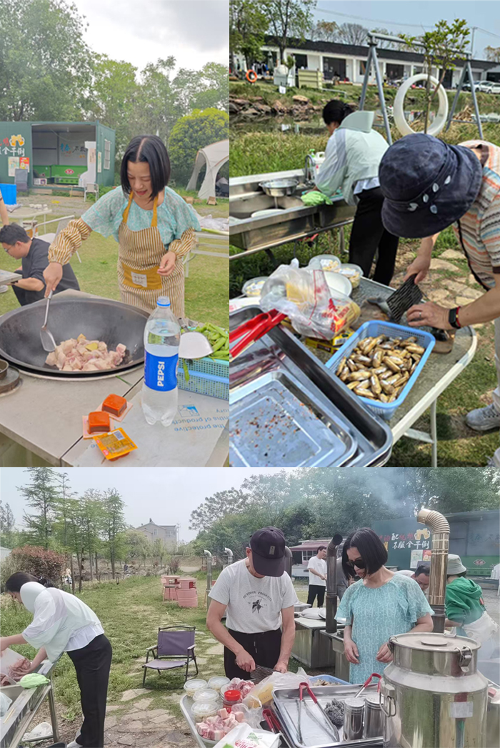 上午,我們抵達(dá)了北港灣戶外燒烤團(tuán)建拓展露營(yíng)地,這里綠樹環(huán)繞,空氣清新宜人。一下車,孩子們便興奮地跑向草坪,大人們也迫不及待地開始準(zhǔn)備午餐。今天,我們要用傳統(tǒng)的土灶來(lái)烹飪美食,感受不一樣的煙火氣。大家分工明確,有的忙著清洗食材,有的負(fù)責(zé)燒火添柴,還有的一展廚藝,掌勺烹飪。不一會(huì)兒,炊煙裊裊升起,飯菜的香氣彌漫在整個(gè)營(yíng)地,一桌豐盛的午餐就擺上了桌。大家圍坐在一起,品嘗著自己親手烹飪的美食,臉上洋溢著滿滿的成就感。